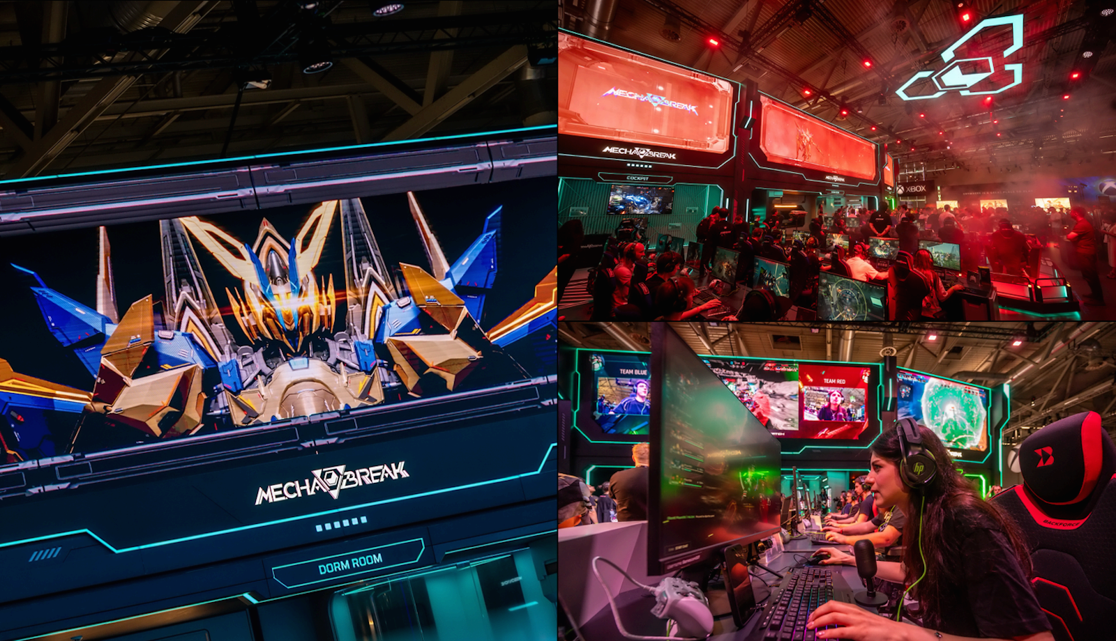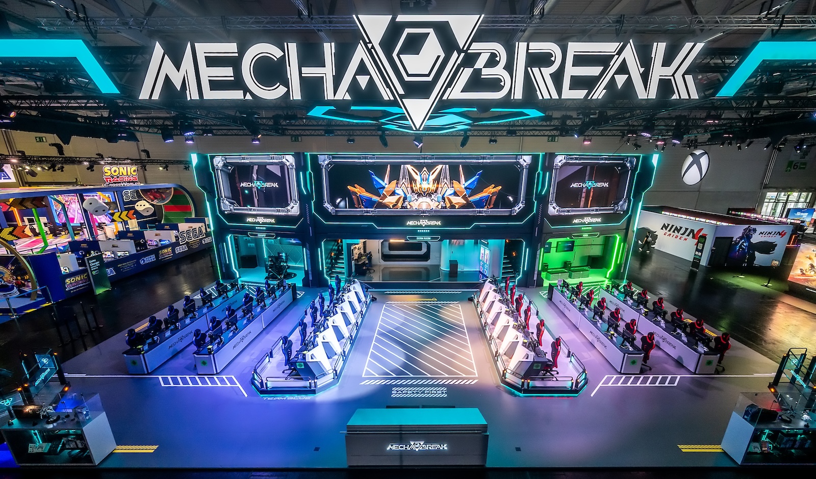 EIDETIC designed the Mecha BREAK booth as a cybernetic hangar to reflect the game’s sci-fi and mecha-shooter identity. With custom weapon props, intricate motifs, and thematic decorations, the entire booth embodied the world of mecha. A full-scale cockpit simulator offered participants an immersive experience of piloting their own mech, earning praise as “one of the most impressive booths at Gamescom.” To highlight the game’s strategic PvPvE battles, a dedicated arena was created, delivering thrilling live matches. The front-facing LED screens broadcasted the action in real time, drawing in large crowds of spectators.